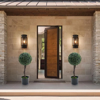 2pcs Topiary Trees Artificial Outdoor, 24″ Milan Grass Ball Topiary Trees, Fake Greenery Tree with Planter Pot for Home, Office, Porch Decor