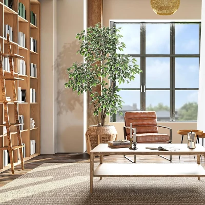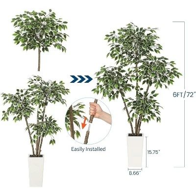 - Sturdy Pot:5ft faux tree comes with a modern white tall pot (15.75″H x 9.05″W) seamlessly fitting styles from minimalist to modernism.