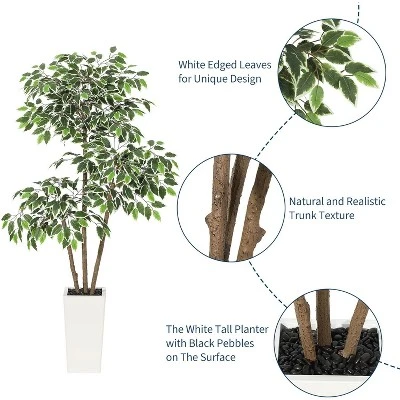 Natural Look And Real Touch : The trunk of the faux trees indoor is texture by trunks, complemented by white-edged leaves have a more design sense, soft texture, requiring a trained eye to spot the difference.A wide variety of natural colors enhances the realism of this faux silk tree.Sturdy Pot: The faux tree comes with a modern white tall pot (15.75″H x 9.05″W) seamlessly fitting styles from minimalist to modernism.Fake tree decor for home the inner of planter, made of durable clay mix, is topped covered with black pebbles—superior to traditional artificial moss—and doesn’t shed dust.The weighted base ensures added stability,making it an excellent choice for homes with pets or children.Adjustable & Sturdy:Trunks of this tall fake plants indoor outfitted with sturdy inner metal wires,the bendable trunks and stems offer easy shaping to reach the desired fullness and aspect.Evergreen Decor: No matter what season or place you are in, we can provide your home environment with different varieties of plants from any season.Also making it an ideal choice for this planta artificial para sala busy individuals or those without a green thumb. Say goodbye to wilting leaves and hello to effortless beauty.Are you dream to create your own oasis where you can escape and relax without leaving the comfort of your surroundings?Simply pop the faux trees for outdoor planters in and relax as you enjoy the natural, relaxed vibe it brings.this fake tree in Home and Kitchen will creates a finishing touch to any places. Please avoid direct sunlight and rain for outdoor use. It’s also a perfect gift choice on Parties, Housewarming, Birthdays,Weddings,etc.