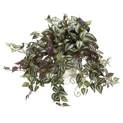 What an interesting (and sometimes frustrating) plant the wandering Jew is – you plant it, and it spreads all over. But put your scissors away – you won’t need them here. This is a classic re-creation of a beautiful, lush Wandering Jew, captured forever in its prime. This silk beauty is then adorned in a beautiful metal planter, ensuring its elegance remains exactly where you want it.