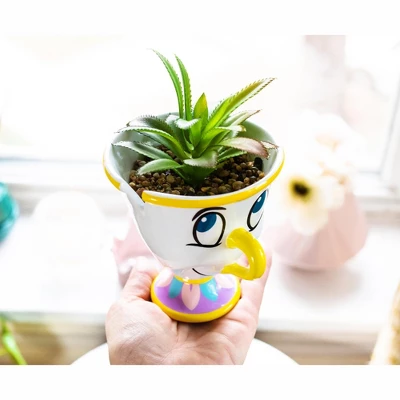 - MAKE A FUN STATEMENT: Spruce up your living space with fun home decor featuring Chip from Disney’s Beauty and the Beast. This decorative indoor ceramic planter inspired by the popular cartoon character comes with a faux succulent plant.
